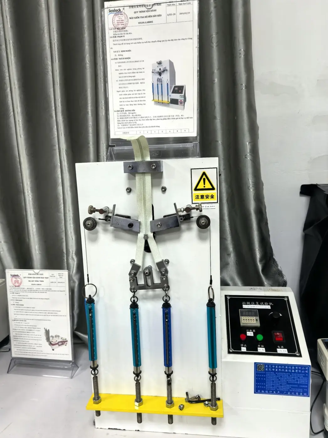 We are equipped with advanced apparatus including high-end testing equipment such as tensile testers, bonding force detectors, zipper fatigue testing machines, salt spray test chambers, and friction color fastness testers.
